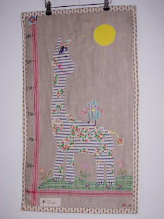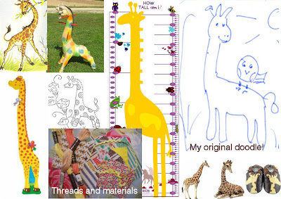 Earlier today I received an email from a lovely lady called Penny. (Hi Penny if you’re reading this!!). She said some very nice things about my work, and then went on to talk about time and inspiration. This made me think … how do I get some of the ideas for my projects? My latest creation is an applique giraffe height chart. Well, that’s easy you might think – loads of giraffe height charts out there, and that’s true. So nul points for originality. BUT .. the ones I’ve come across are paper or wood, and feature a giraffe with an elongated neck. Whilst they are certainly attractive, (1) they weren’t what I had in mind and (2) they are most certainly copyrighted by someone else which is fine by me – I wanted to do something different.