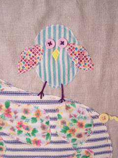 These photos aren’t the best, but hopefully you can see how the giraffe and his little birdy friend came together. My colour palette was based on the colours in the fabric I used for the giraffe patches. I’m always very strict with myself about limiting the colours I use … at one of my very earliest water colour classes when we were being taught how to mix colours, our tutor explained that by limiting our colours our pictures would come together better – and if you used too many different unrelated colours then your picture would appear patchy and bitty. I think this principle applies to fabric too, and if you like the colours together in one fabric then they’re sure to work well in your design as a whole.