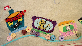 I was off !!! Here is the (nearly) finished front panel for the bag. You’ll see that I’ve simplified the train slightly and changed the smoke to bubbles – much simpler.