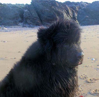 … here are our foot and paw prints side by side. I take a UK size 6 (though I think my wellies are a 7 to allow for nice toasty socks). So as you can see, Ben’s paws are very large indeed. Of course he does have webbed paws for swimming which make them spread out more, but now he is in his prime he weighs about 154 lbs. That’s a lot of dog! Luckily he’s very cuddly and gentle. And he loves to collect beach pebbles …