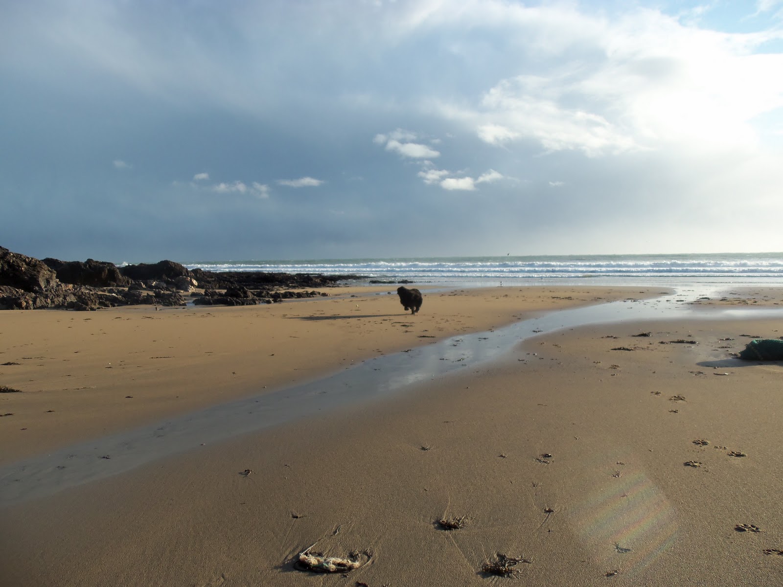 I love the beach at this time of year – it was completely deserted – the surf was too choppy and messy for even the most dedicated surfer and so Ben was able to charge around at 100 miles an hour chasing his ball in and out of the waves. That oddly-shaped black lump in the middle of this picture is him chasing his ball down towards the water’s edge.