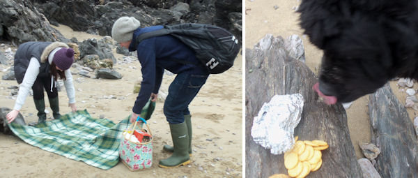 Here you can see Rosie & Dan laying out the blanket … and a little later on Ben taking full advantage of some unattended food!! Shocking canine behaviour!