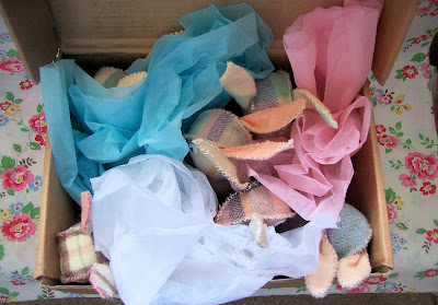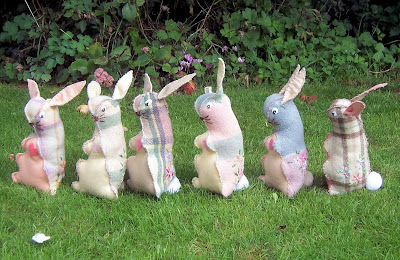 Once upon a time there were six little bunnies. They were all made out of vintage blanket by Ellie who had taken great care in embroidering their little black eyes, their beautiful long brown whiskers and the lovely colourful flowers on their plump little bodies. But they were most proud of their beautiful fluffy tails which were as soft as soft could be.