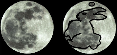 The pilgrim was moved by the rabbit’s sacrifice, and wept, saying, “Each one deserves praise; there are neither winners nor losers. But the little rabbit has given an exceptional proof of love.” So saying, he restored the rabbit to his original form and took the little body to heaven to be buried in the palace of the moon, where the rabbit may be seen to this day.”