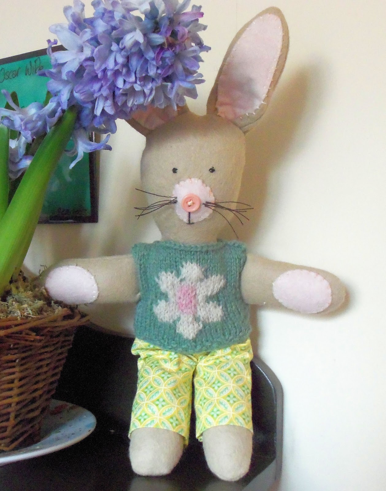 However, I have been enjoying some gentle knitting – my little bunny now has his jumper – though I haven’t made an alternative fabric top for non-knitters yet – maybe tomorrow ….