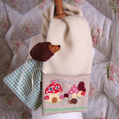 I love your scarf. It just looks so soft and cozy. The little hedgehog and his toadstools are a wonderful addition.