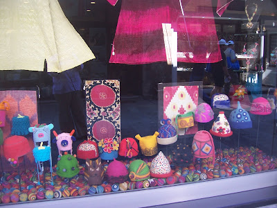 Sitting on a layer of felt balls – I love those colours and shapes – perhaps it’s just as well the shop was closed! Or I might have brought home a suitcase full of felt balls!! (Did manage some quite successful shopping though)