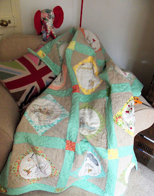 A very quick snap … as I sat down to finish binding my Rosie & Bear Calendar Quilt (helped by Charlie the patchwork elephant!). Not a brilliant photo, but good enough I think that you can see how it’s coming together. Lots of cups of tea required to help me finish it off – and some peace and quiet please Ben!